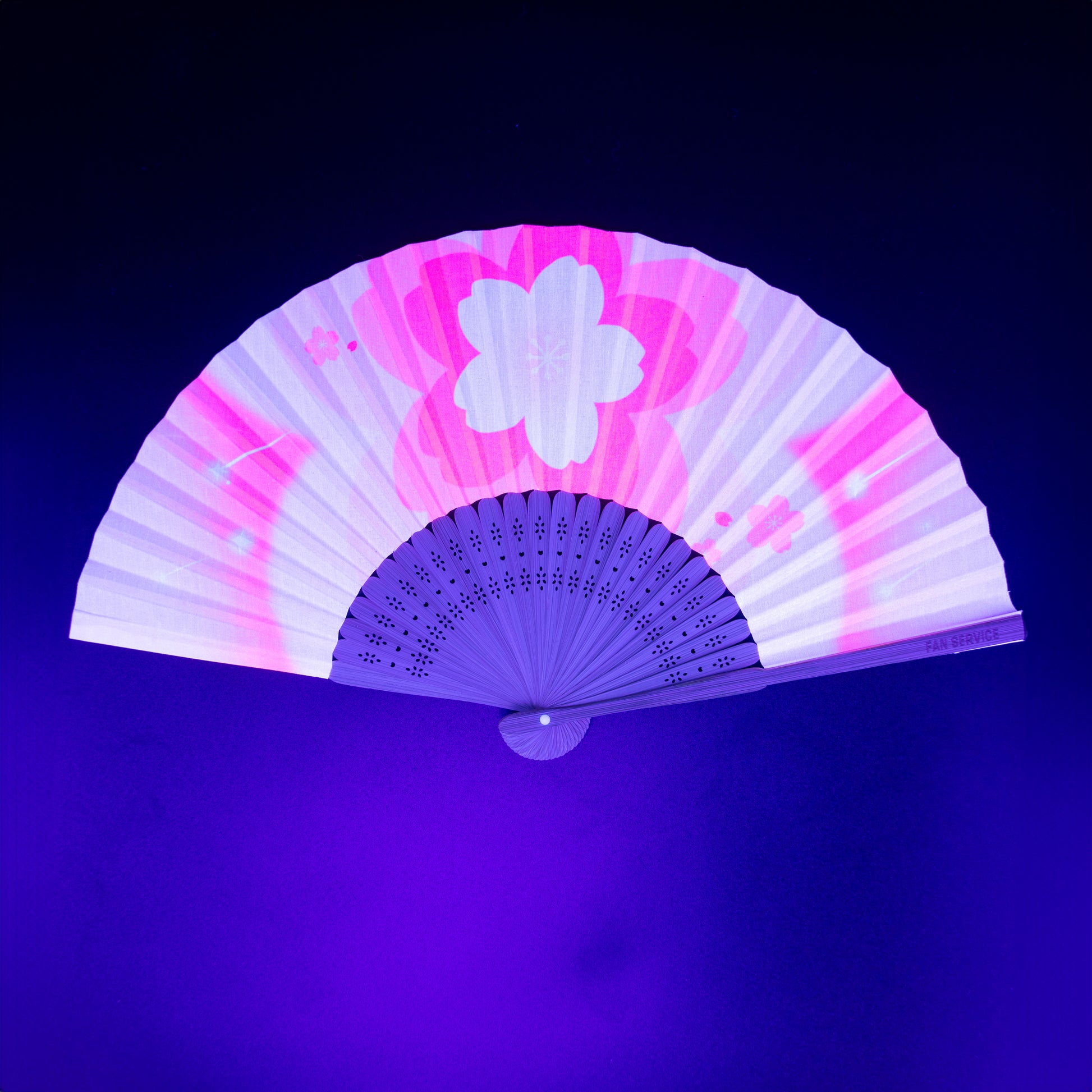 Step into your soft era with the Sakura Bloom rave fan — a delicate swirl of pastel petals and gentle light. Inspired by spring blossoms drifting through the breeze, this hand-drawn fan glows with UV-power to light up your world like a calm sunrise. Whether you’re twirling to dreamy synths or catching your breath between sets, this fan is the perfect pocket or purse-sized companion to keep yourself cool and calm in the chaos.